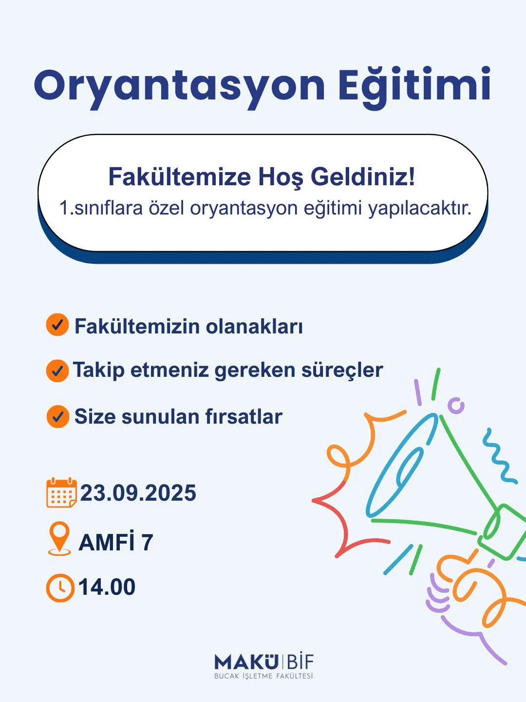 Dear 1st grade students, on 23.09.2025 at 14:00, an orientation training was to be held in Amfi 7. We invite you to the orientation training to listen to the opportunities of our faculty, the processes you need to follow, and the opportunities offered to you.