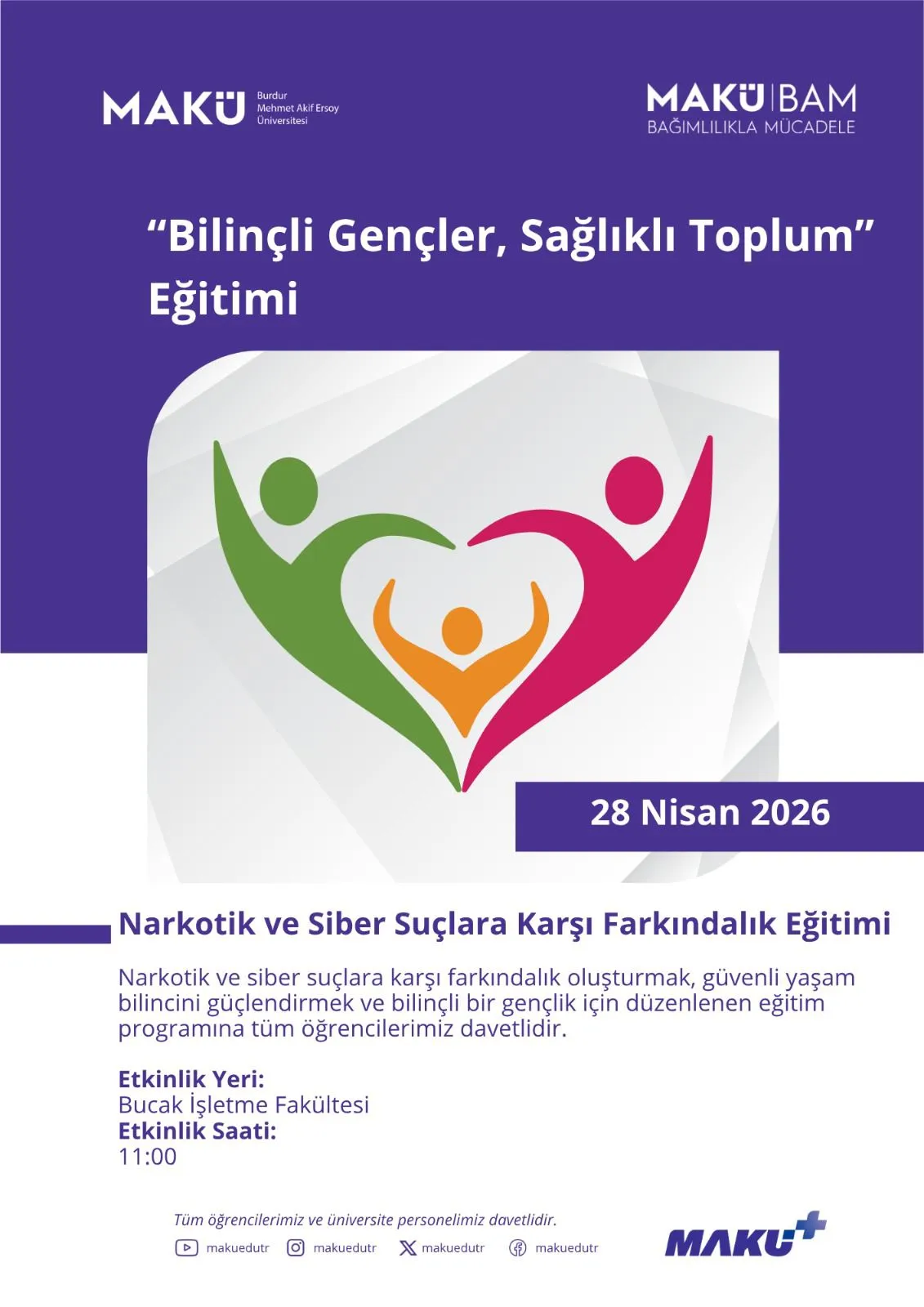 Narkotik ve Siber suçlara karşı farkındalık oluşturmak, güvenli yaşam bilincini güçlendirmek ve bilinçli bir gençlik için düzenlenen eğitim programına tüm öğrencilerimiz davetlidir.